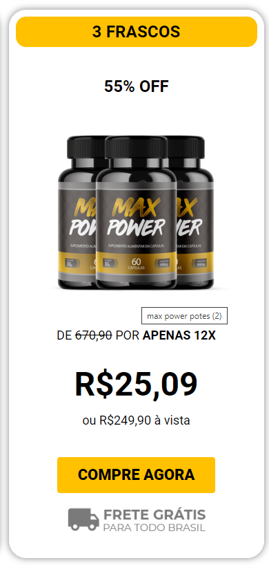Max Power nas Últimas unidades disponíveis com kits de até 65% desconto! Faça o pedido da sua unidade hoje com menor preço.